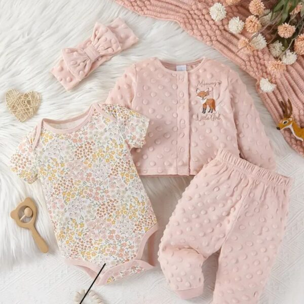 Conjunto de 4 piezas 100% algodón para acompañar cada momento de tu bebé con suavidad y estilo.