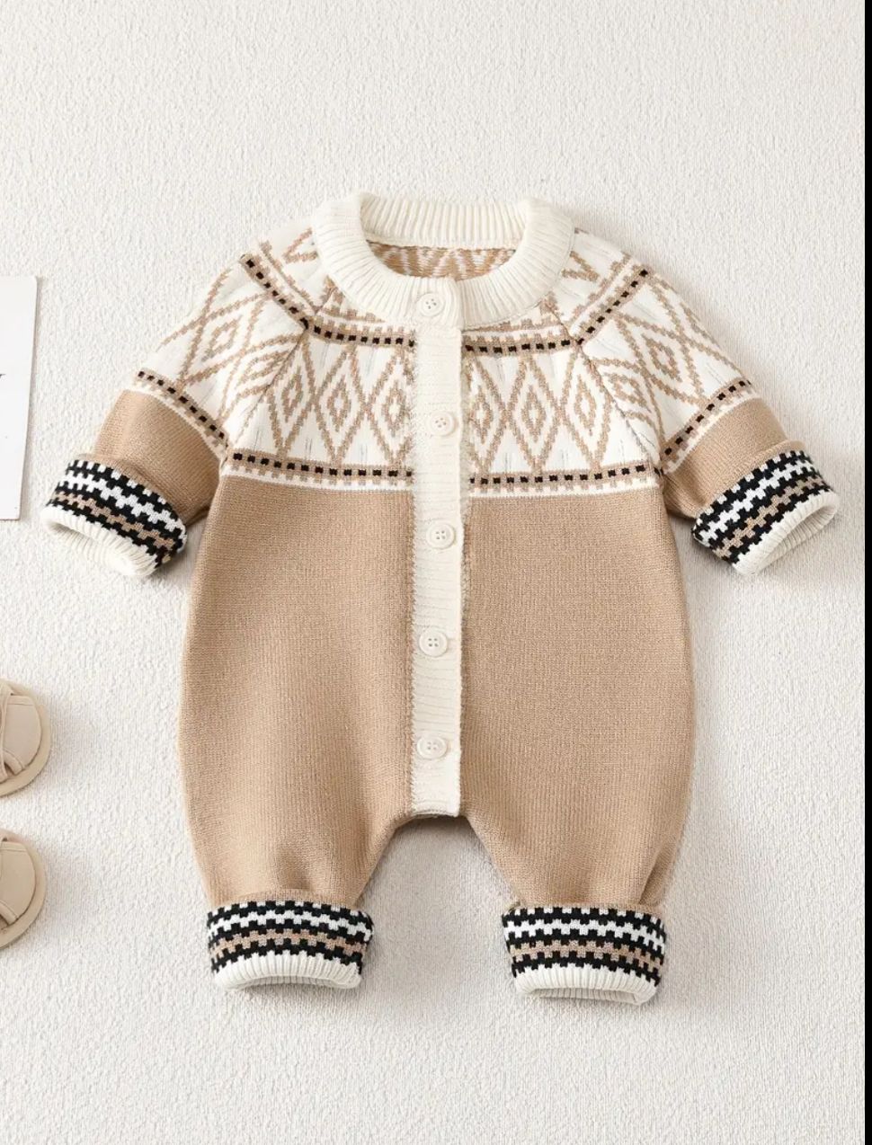 Enterizo de punto suave y cálido, ideal para mantener a tu bebé cómodo en todo momento.